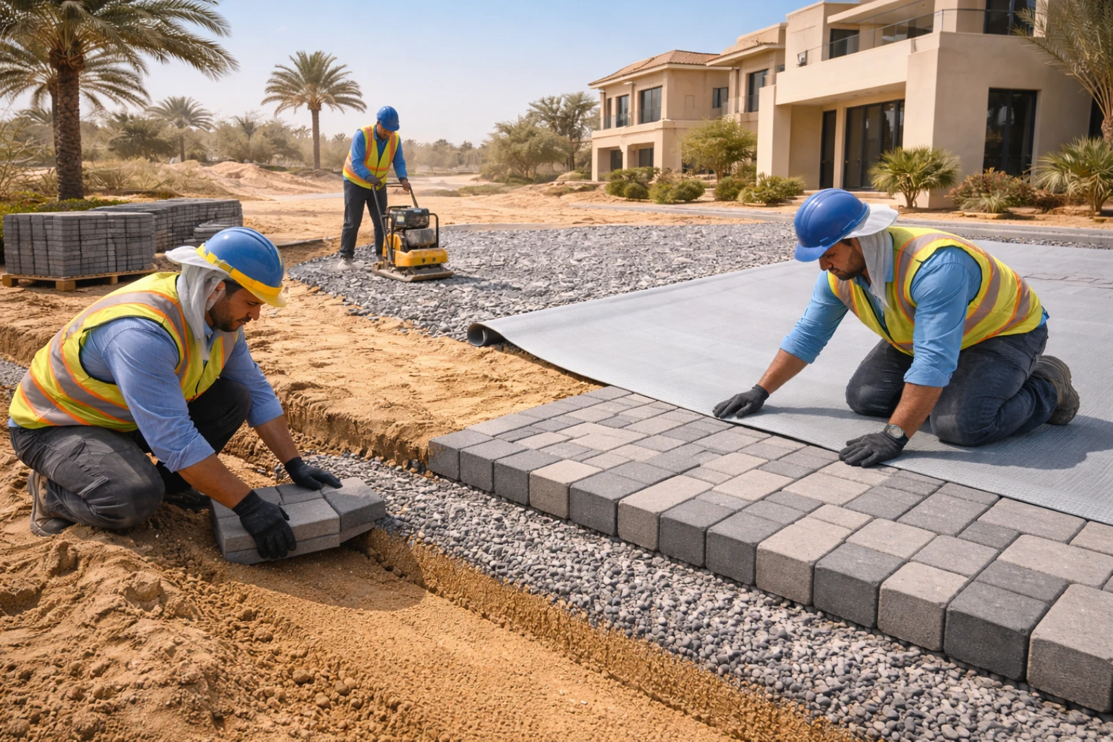 The cost depends on area size, paver type, and groundwork requirements. Larger driveways in communities like Dubai Hills or Palm Jumeirah may require deeper base preparation. We provide a detailed quotation after site inspection.